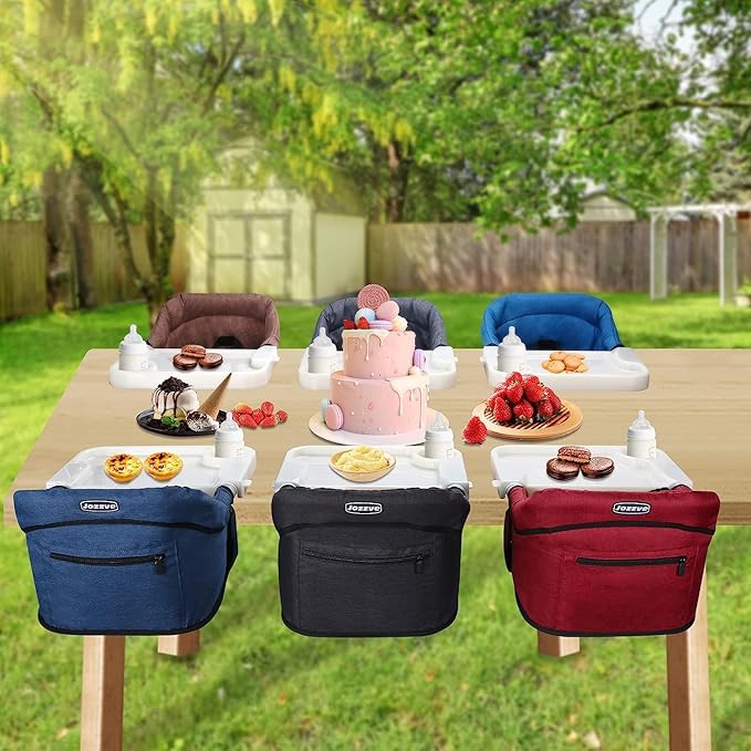 - 【Portable and Foldable Travel High Chair】: Our baby high chair weighs only 3.5 lbs and features a foldable design, which can be easily folded and stored in the carrying bag that is included. This foldable high chair perfect for travel or outdoor use. The hook on high chair comes with a removable dining tray with a cup holder, wherever you go, you can carry the hook on high chair with tray easily, and it's easy to wipe clean and washing.