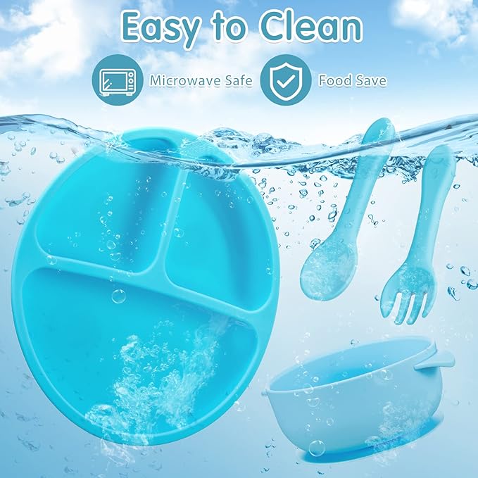 - Useful Portions: the suction plates for baby set possesses 3 nicely sized portion dividers for keeping food separate and well balanced meals, simply fill up with your little one's favorite breakfast, lunch, or dinner, offering matched fork and spoon to give your children a nice eating experience