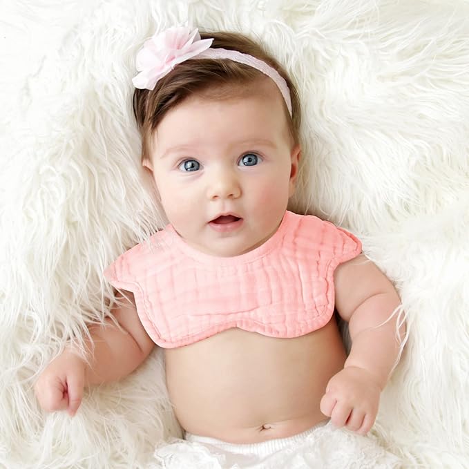 Geyoga 10 Pcs Baby Bibs 360° Rotate Baby Bandana Muslin Drool Bibs Petal Bibs Burp Gauze Cloths Absorbent Bib