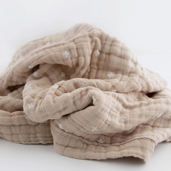 Little Unicorn Newborn Receiving Quilt | Ultra- Soft, Multi-Layered Muslin Fabric | Gift for Newborns & on-The-go (Taupe Cross)