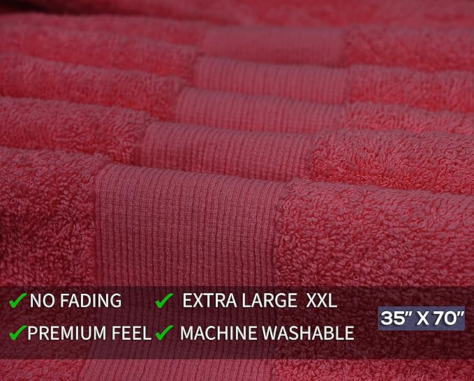 - PERFECT SIZE: These Pack of 2 each size of 35” x 70” inches Oversized bath towels are highly absorbent and can hold significant amount of liquid.