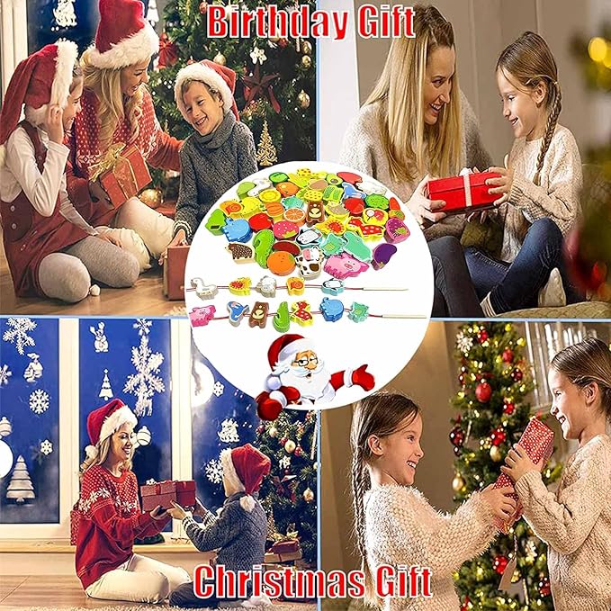 - 【Birthday Gifts for Children & Best New Year Gifts】 This lacing toy beads set is a popular birthday gifts for toddler kids. Kids can share & play with friends, helpful to build friendship and self-confidence. Threading beads wooden toys for kids is also perfect choice for Xmas gifts.Wooden string toys for 3 4 5 6 year old kid girls as Christmas gifts, Thanksgiving Day, Children's Day, other holiday gifts.