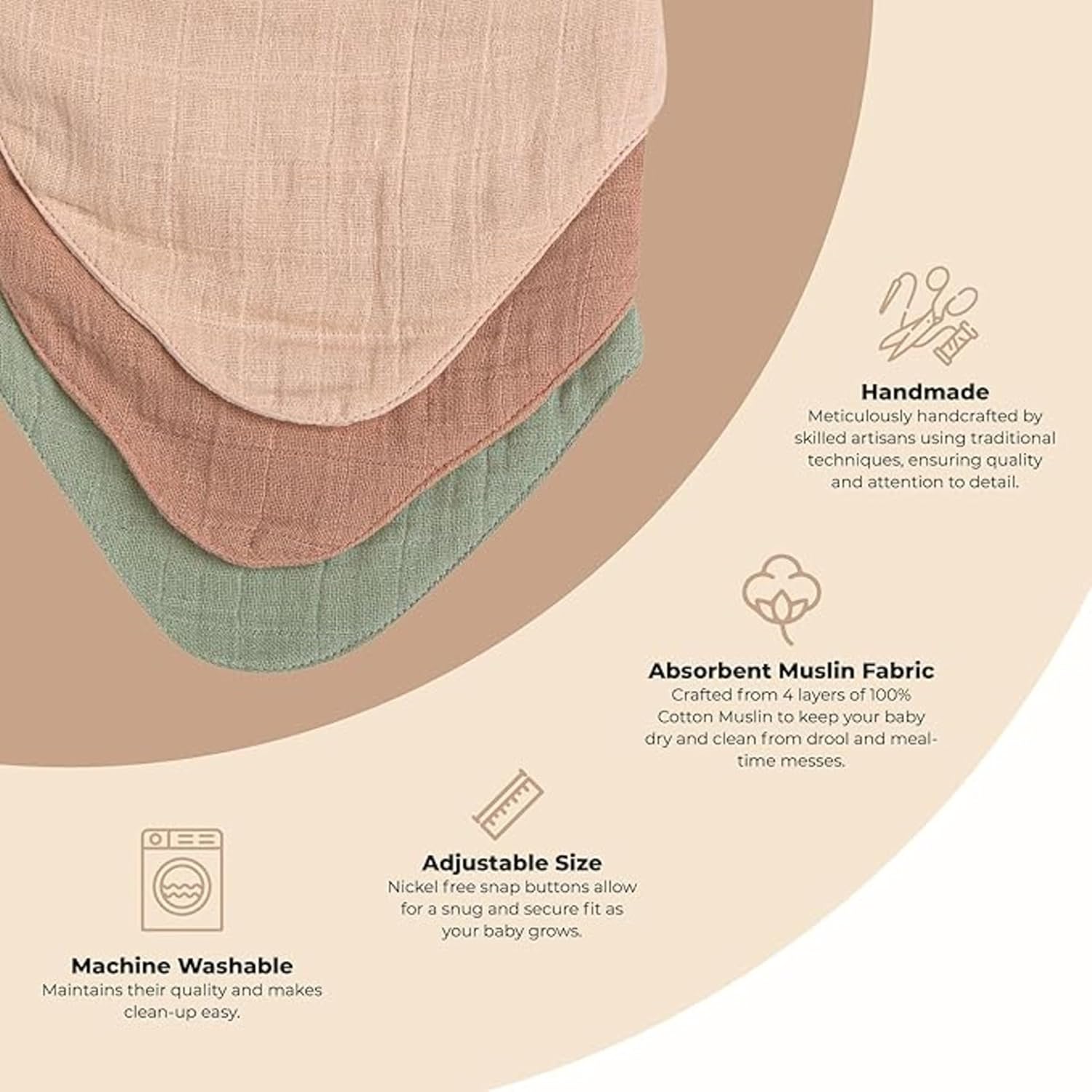 - Versatile Use - Made with soft, lightweight 4-layer muslin, great for teething babies, meal time, and stylish comfort