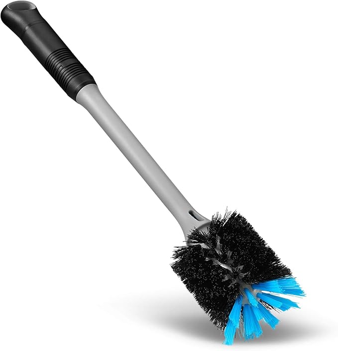 - Dual-Function Bristles: The Bottle Brush Head has two types of bristles for gentle cleaning and serious scrubbing; soft black bristles are gentle enough to wine glasses and crystal without scratching, while the stiff blue bristles on the tip are firmer, give the hard-to-reach corners and bottom of bottles a serious scrub