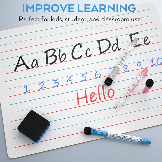 Nicpro Dry Erase Lap Board 12 x 16 inches 2 Pack Ruled Kid Double Sided Blank & Lined Small White Board with 8 Pens, 2 Eraser, Learning Mini Whiteboard Portable for Students Home School Supplies