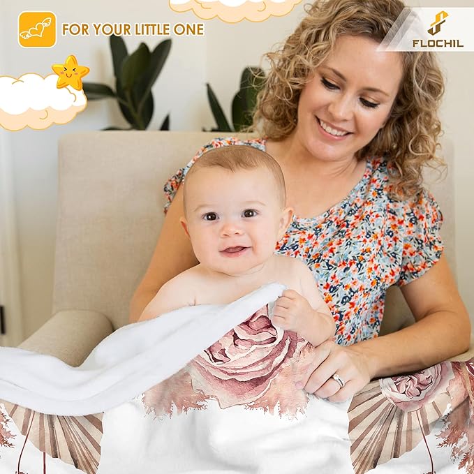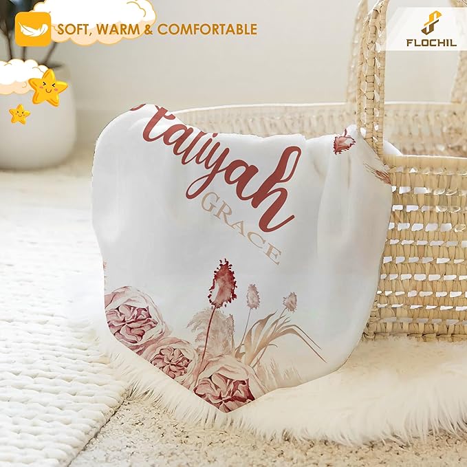 FLOCHIL Personalized Baby Blankets, Custom Baby Blanket - Baby Blanket with Name for Girls, Best Gift for Newborn Floral Plush Fleece (30x40)