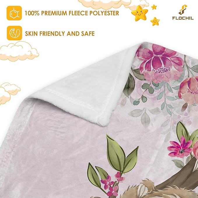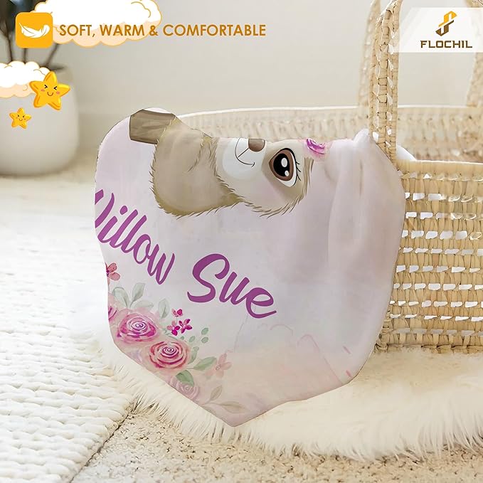 FLOCHIL Personalized Baby Blanket - Custom Baby Blanket with Name for Girls, Newborn Sloth Plush Fleece (30x40)