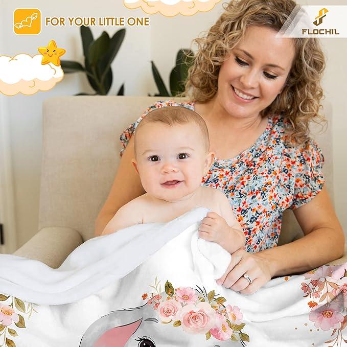 FLOCHIL Personalized Baby Blankets, Custom Baby Blanket - Baby Blanket with Name for Girls, Best Gift for Newborn Elephants Plush Fleece (30x40)