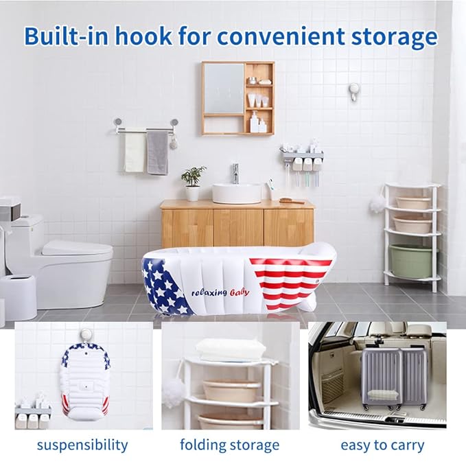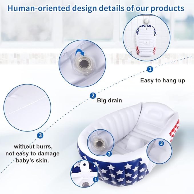 - SOFT & SAFE MATERIALS: Non-toxic thickened PVC, practical, durable, Blow up tub is soft, smooth without burrs, it’s not easy to damage children's delicate skin. Soft baby bathtub mat bottom, baby sink bath to hold enough water.