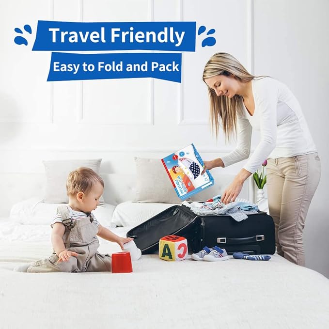 - HUMANIZE DETAILS: Easy to drain with a big water drain plug, separate air chamber in the center for different age baby fit, Come with an attached hook to hang dry, and save space.portable, inflatable, soft,durable, easy to use and clean,folds compactly for traveling and storage