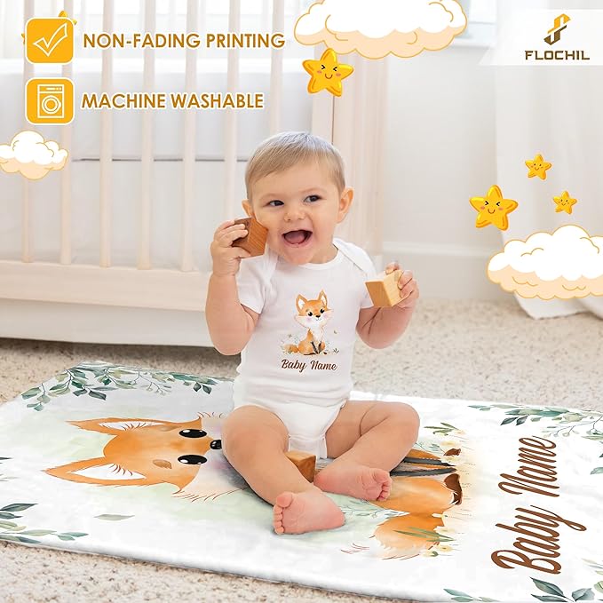 Personalized Baby Blankets, Custom Baby Blanket - Baby Blanket with Name for Boys, Best Gift for Baby, Newborn Elephants Flush Fleece (30x40) (Fox)