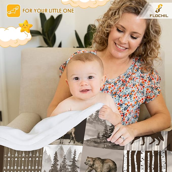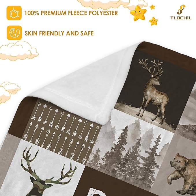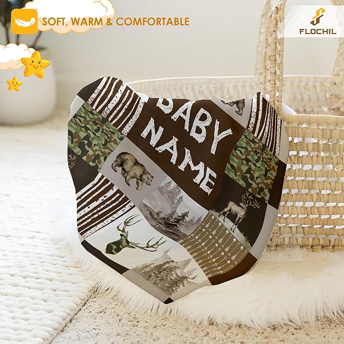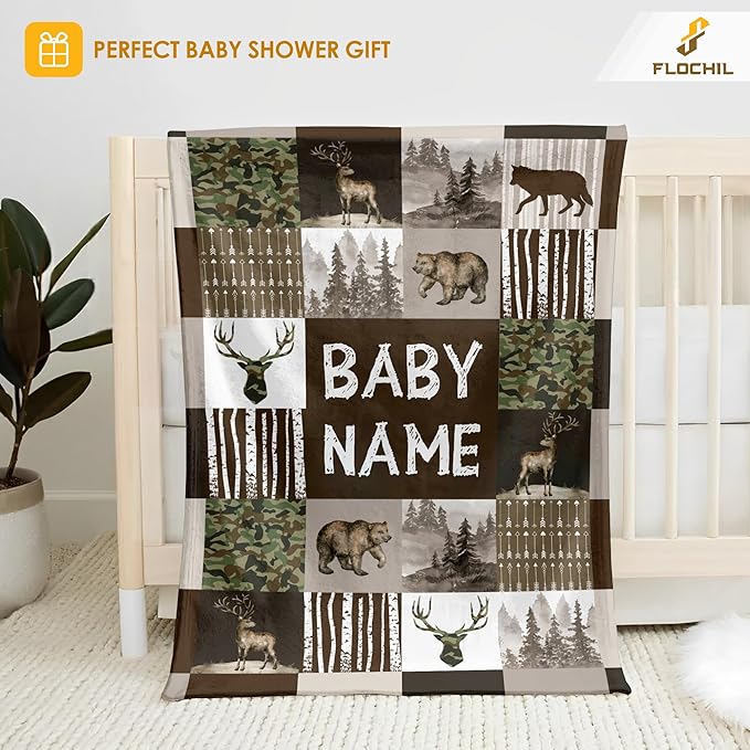 Personalized Baby Blankets, Custom Baby Blanket - Baby Blanket with Name for Boys, Best Gift for Baby, Newborn Elephants Flush Fleece (30x40) (Woodland 2)