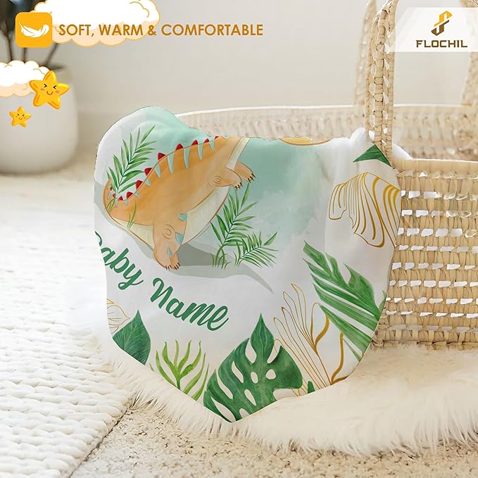 Personalized Baby Blankets, Custom Baby Blanket - Baby Blanket with Name for Boys, Best Gift for Baby, Newborn Elephants Flush Fleece (30x40) (Dinosaur 2)