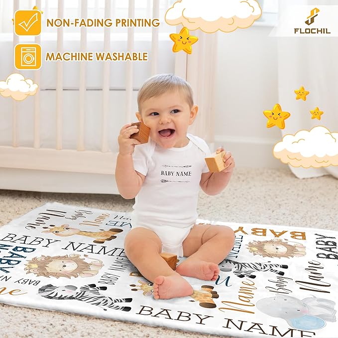 - PERSONALIZED BABY BLANKETS: Click "CUSTOMIZE NOW" and enter Baby's name or text on this cute personalized baby blankets (you can also add the optional matching bib and baby onesie). A personalized baby blanket with name for your baby will be the best gift for your little angel and can be used as a permanent souvenir, Also makes a perfect gift that stands out in any baby shower and registry party, christmas gifts, birthday gifts.