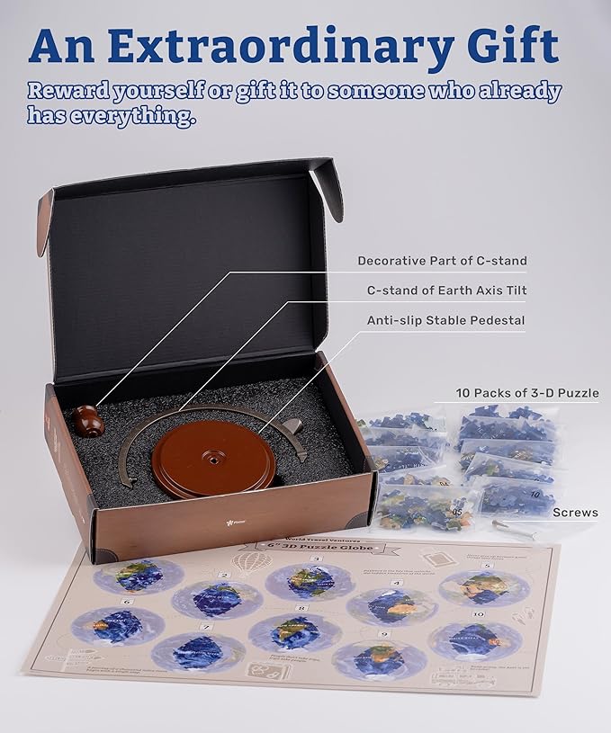 - Beautiful Stand Included: Our puzzle globe comes with a sturdy stand that allows you to display it proudly. Whether on your desk or as a centerpiece, this globe will add a touch of elegance to any space.