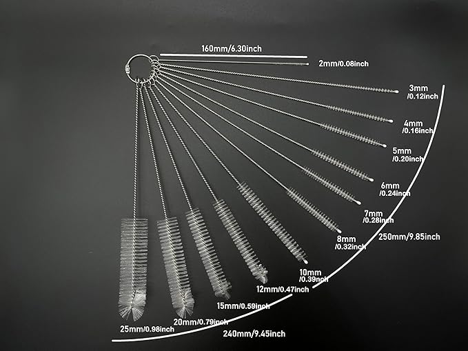 - MULTIPLE SIZE - This set of 12 straw brushes with diameter of 2 mm-25 mm, and the nylon bristle lengths of extra long size: 6.5 inches, 9.5 inches and 10 inches . Great for clean your reusabel stainless straws and silicone straw on Tumbler, Sippy Cup, water Bottles with straw, Tervis, CamelBak, Hydroflasks, Yeti, Starbucks Cup and others.