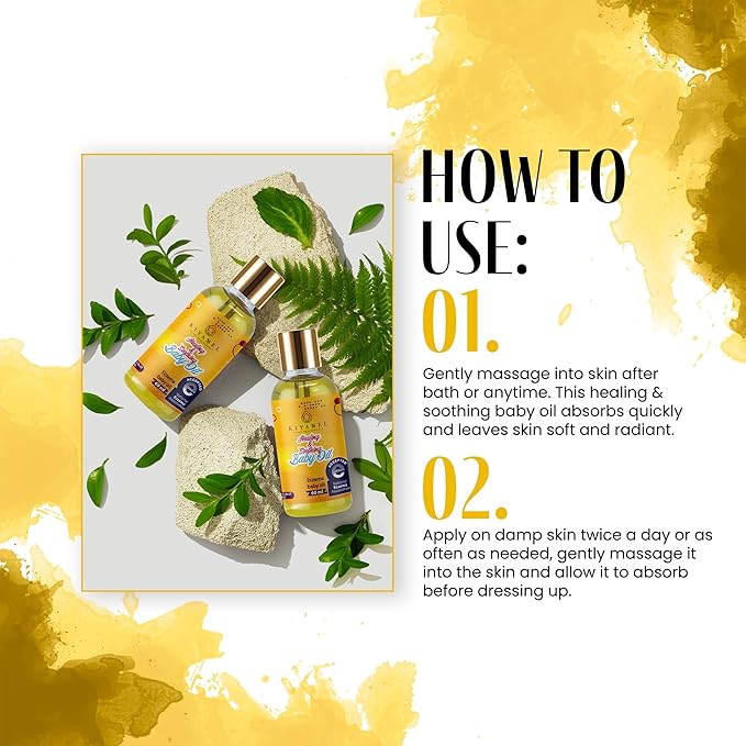 KIYAMEL Healing and Soothing Baby Oil, Fast Absorbing Moisturizer for Sensitive Skin, with Jojoba, Argan & Black Currant Oil, Natural Orange Scent and Vitamin E Enriched