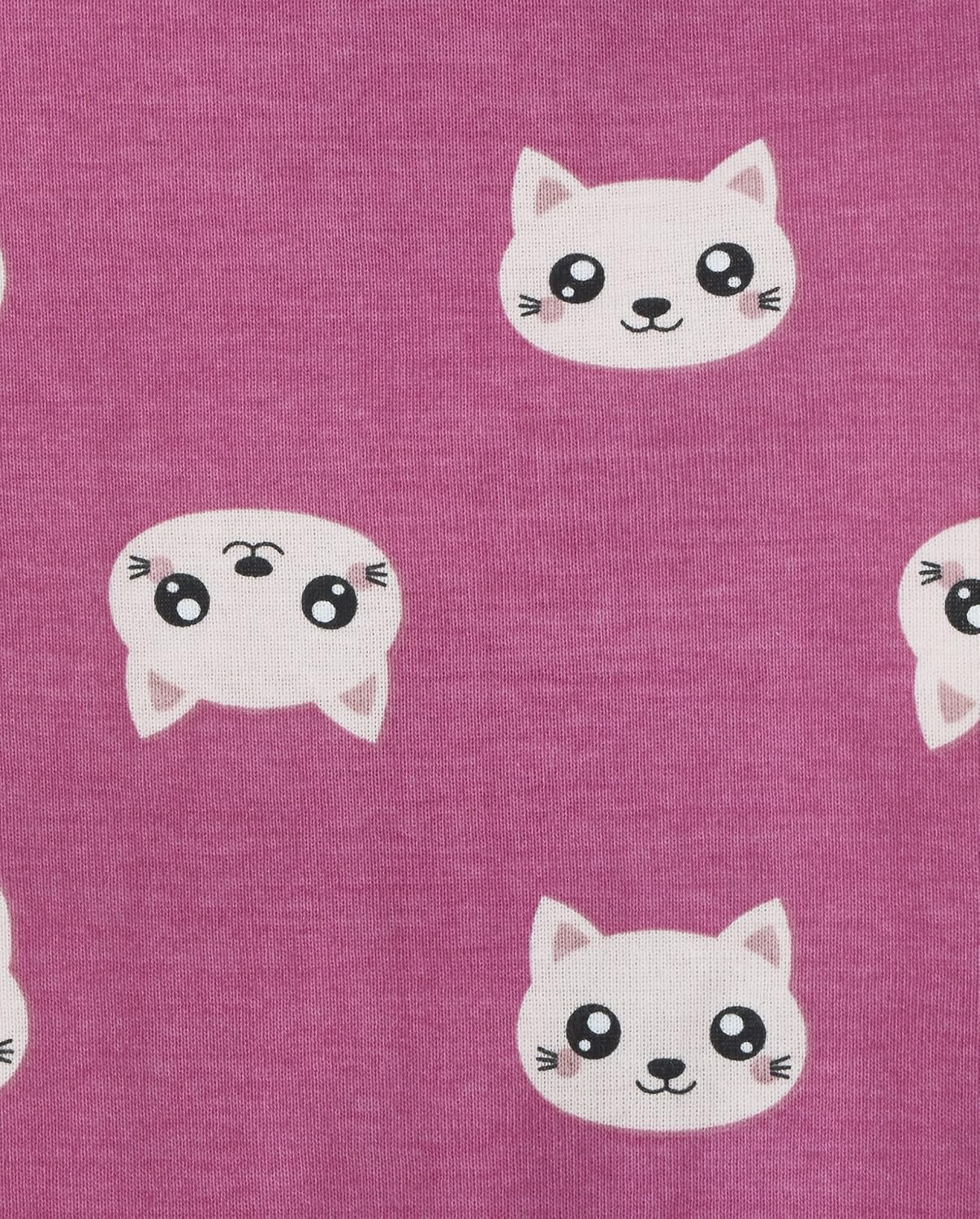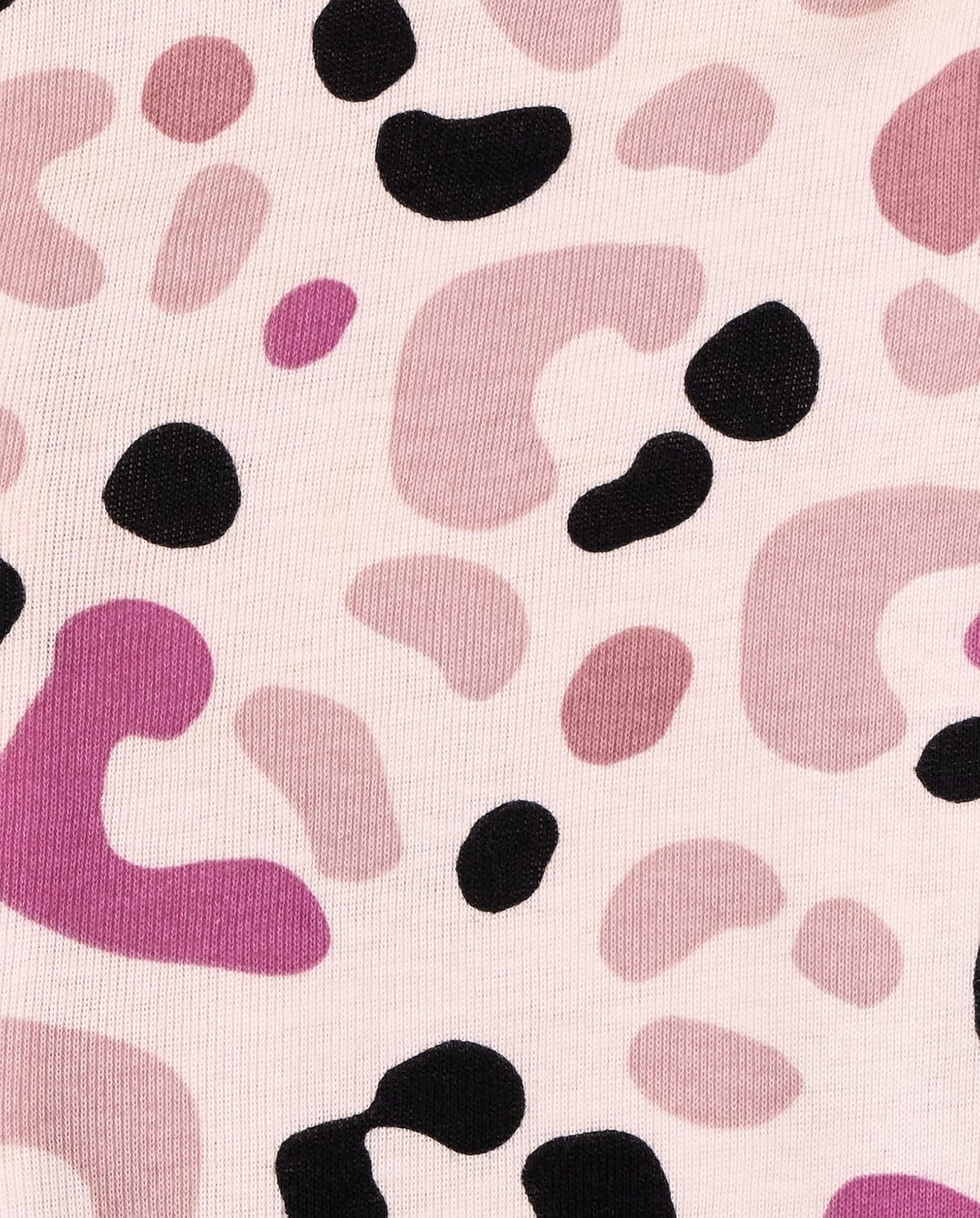- DESIGN — Features long sleeves, rib-knit crew neck and sleeve cuffs and attached footies with elasticized back ankles: 1 style with allover cat print; 1 style with allover leopard print