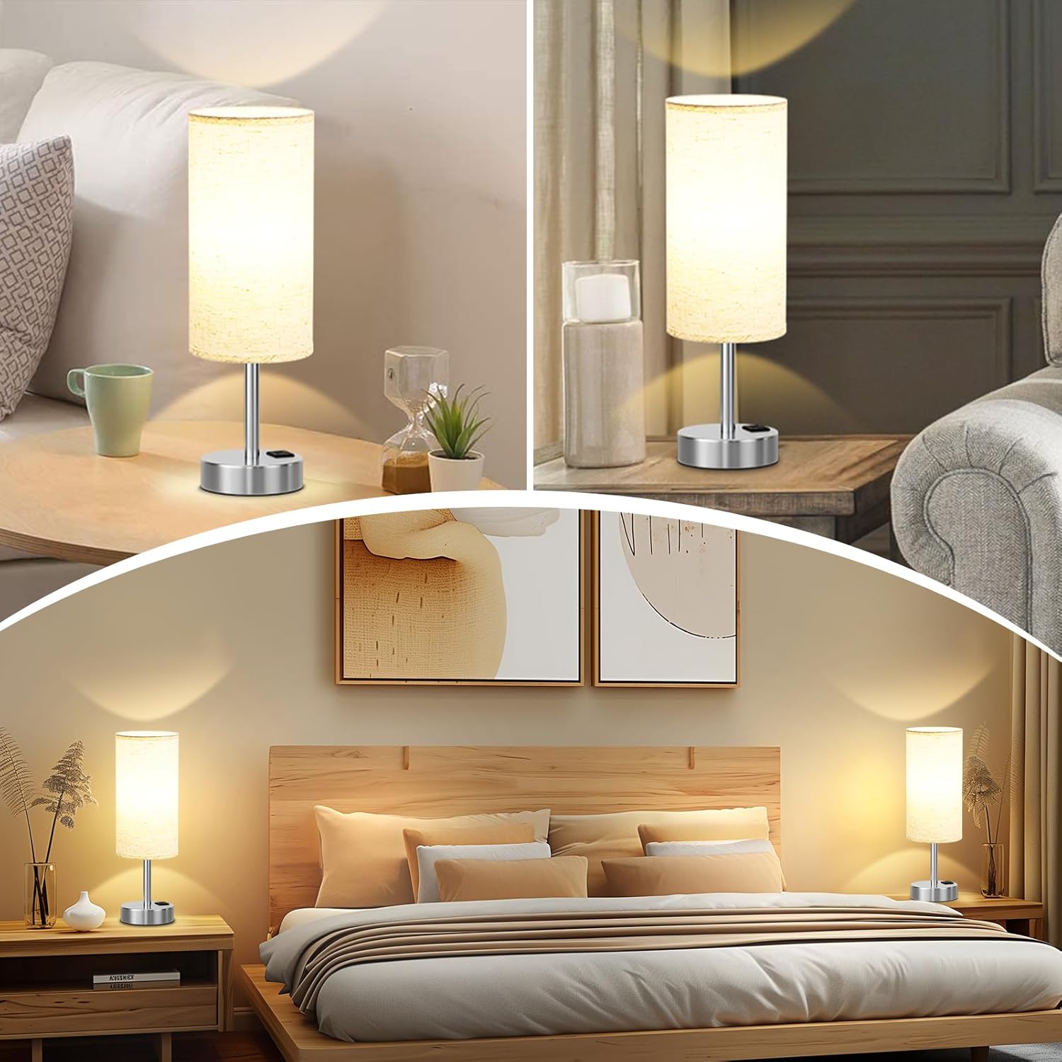 - 【 Small Lamps for Small Spaces 】- This basic side table lamp has a simple design, it is very suitable to decorate anywhere in your home, especially bedroom, dorm, living room, study room, guest room, kids room and so on. With a white linen shade and silver metal base, the small table lamp is exquisitely crafted and ideal as a gift for family and friends