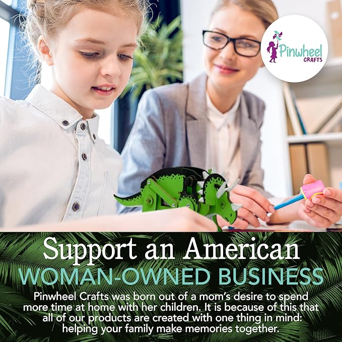 Pinwheel Crafts Robotic Dinosaur Arts & Crafts Science Kit for Kids Ages 6-12 – Wooden Dinosaur Toys with Paints – Ideal Gift for 6-Year-Old Boys