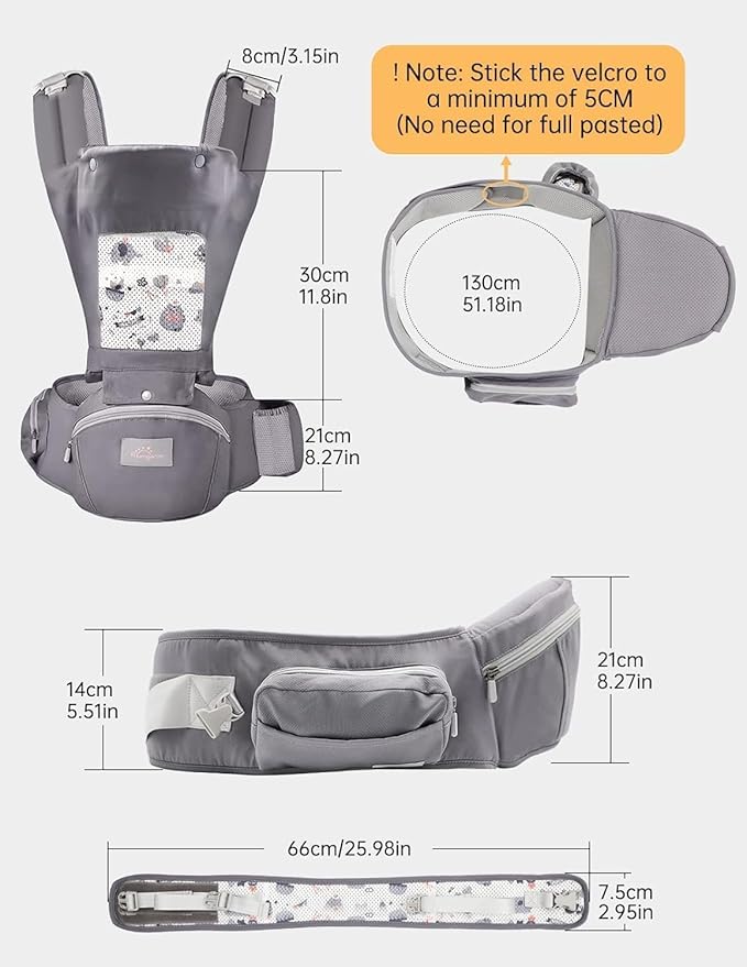 - 【More Thoughtful Designs】The hip carrier for baby comes with multiple storage pockets for bottles, diapers, wipes, keys, wallet, phone and more. The hood provides protection from the wind and sun for baby, and can even be used as a privacy cover for nursing mothers.