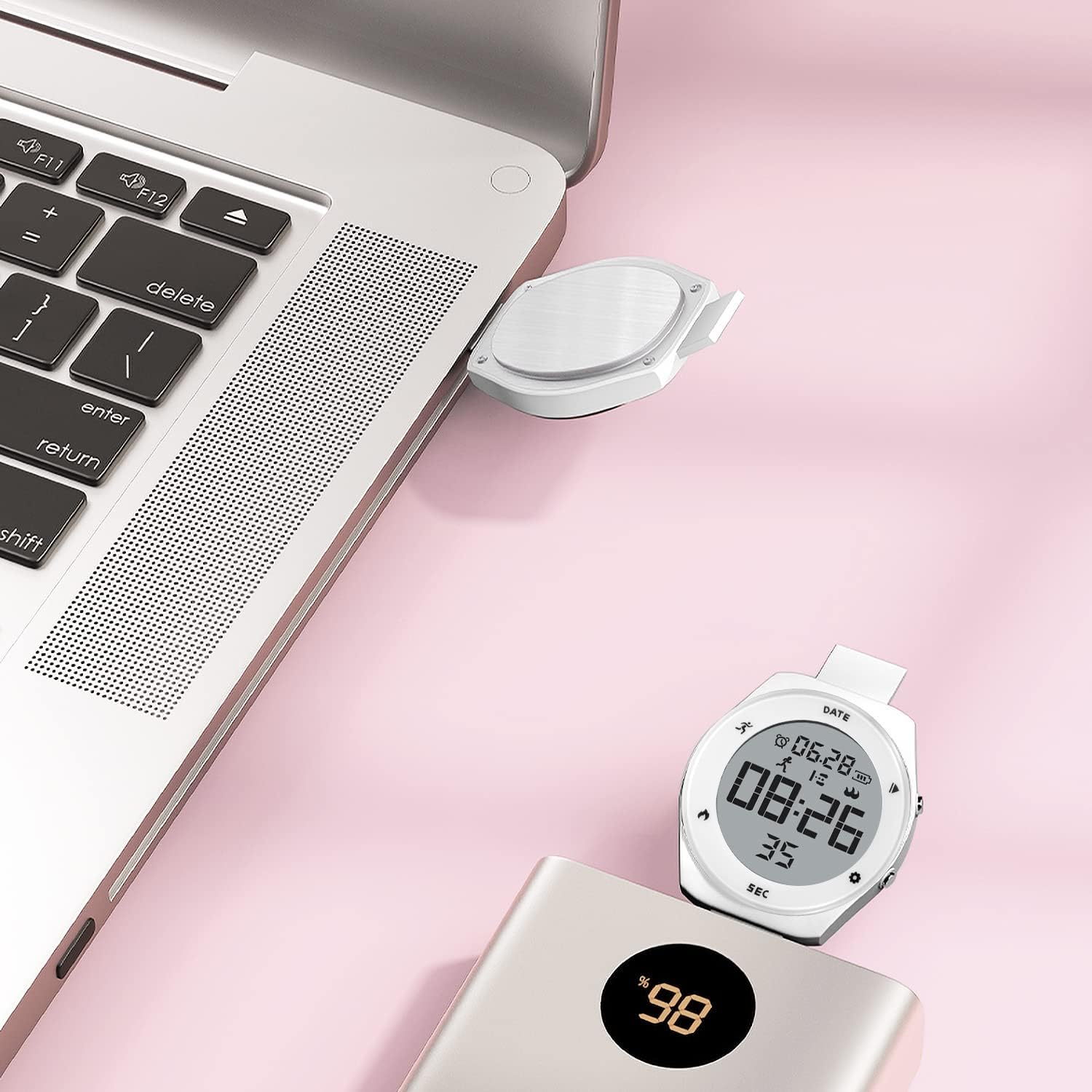 - Charges via any USB port for 15+ days of battery life