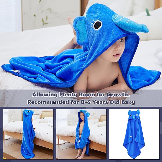 - ❤ENJOY ABTHING TIME - The cotton bath towels absorbs moisture, which will keep your baby warm and dry and conserve body heat Adorably Embroidered with Unique Cartoon Animals on the Hood, It Adds Playful Fun to Children's Bathing Time Routine.