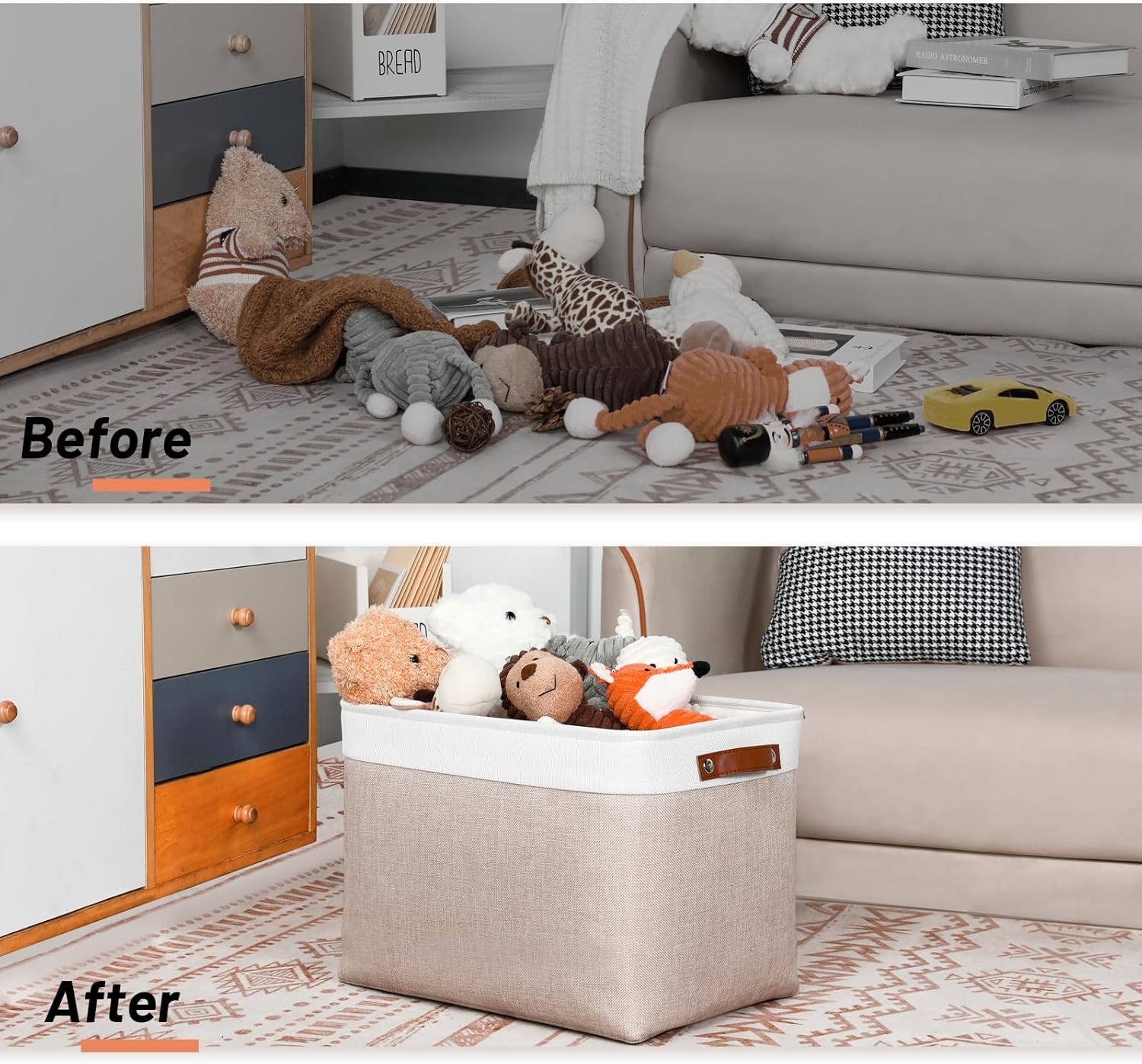 DULLEMELO Fabric Storage Bins, Lining Fabric Baskets For Gifts, Large Storage Baskets for Toys Books Clothes Storage, Foldable Storage Basket for Office Home Shelves Closets Organizing(White&Khaki)