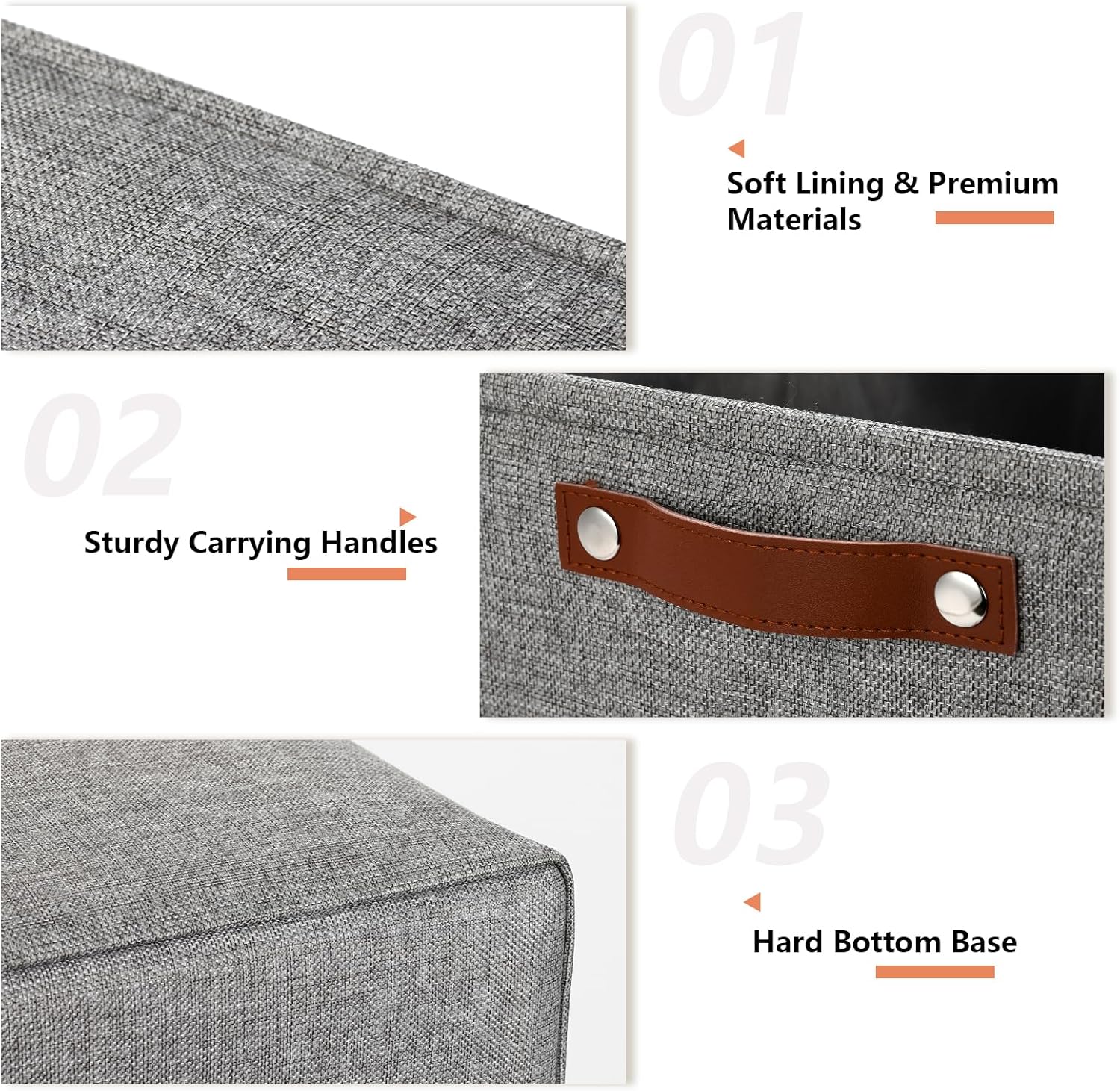 - đăMulti-Purpose Basketsă--- The grey baskets can be easily hidden in closets, cabinets, side tables,shelves, etc, without occupying any gaps. You can also use the organizing baskets to storage socks, underwear, books, magazines, toys, pet products, wipes, towels, decorations, office supplies, DVDs, and gifts.