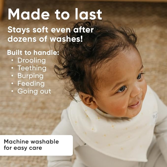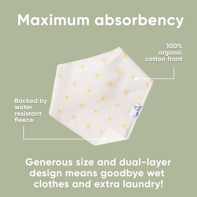 - MAXIMUM ABSORPTION: Fronted by ultra-soft Organic Cotton and lined with water-resistant polyester fleece to provide an extra layer of absorbency. Each bib is crafted with dual-layer protection against heavy drooling or spit-up, keeping your baby dry and comfortable.