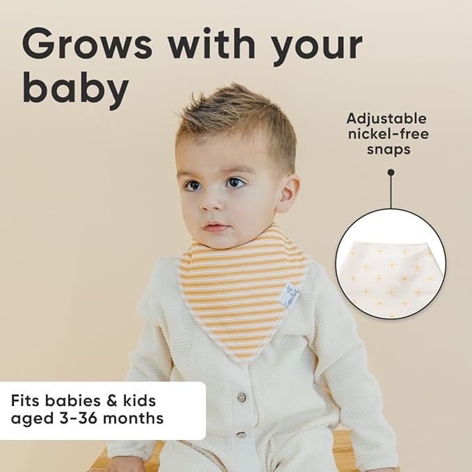 - GROWS WITH YOUR BABY: Each bib features two adjustable nickel-free snaps, allowing for a perfect fit from newborn through toddlerhood (3–36 months).