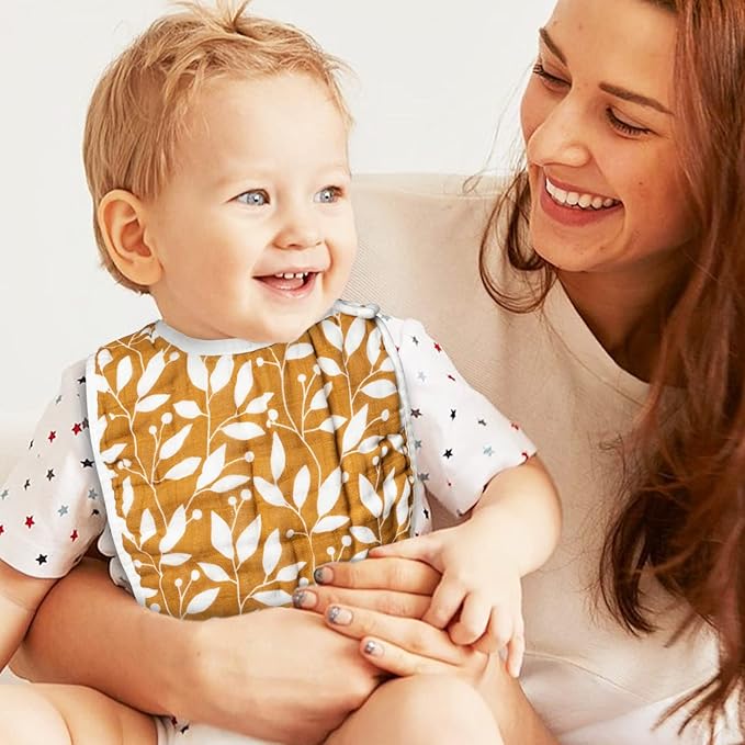 - Multiple Layers of Absorption: Our baby bib has 6 layers of soft cotton cloth, which are strong absorbent and can effectively absorb saliva and liquids, helping to keep your baby's clothes and skin dry. Avoid spills, teething and drooling.