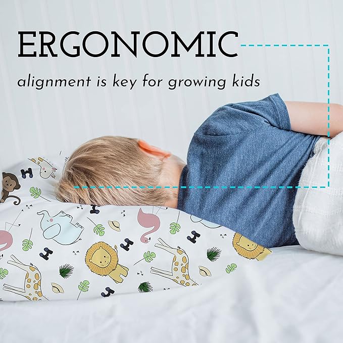 Little Sleepy Head Toddler Pillow with Pillowcase 13x18 - Kids Pillow for Sleeping - Toddler Pillow - Better Neck Support Ergonomic Pillow and Toddler Pillowcase - Best Pillows for Kids (Safari)