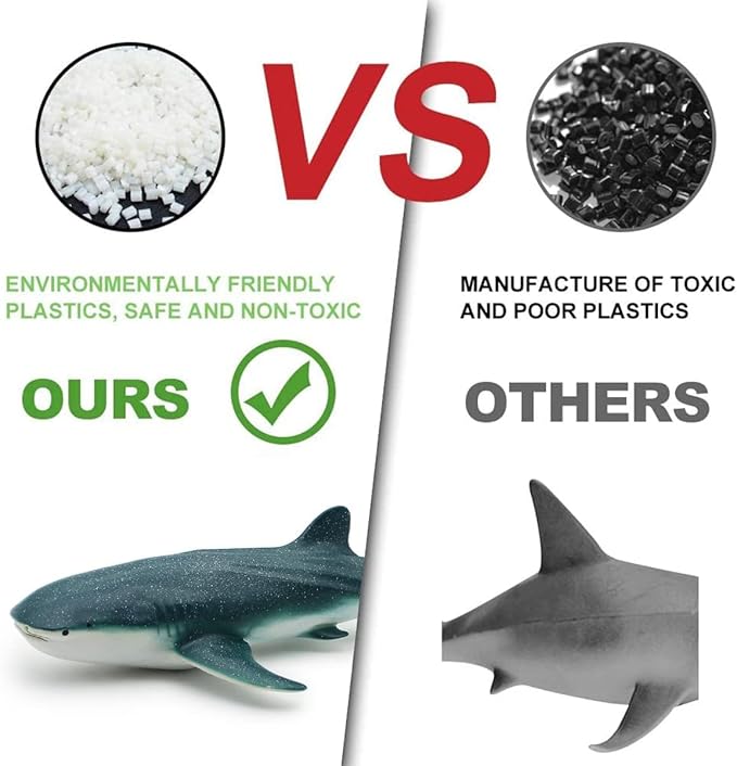 - [6 Pack Sea Animal Toy] This sea marine animal figures includes 1 pack blue whale, 1 pack humpback whales, 1 pack sperm whale, 1 pack hammerhead shark, 1 pack tiger shark and 1 pack great white shark.