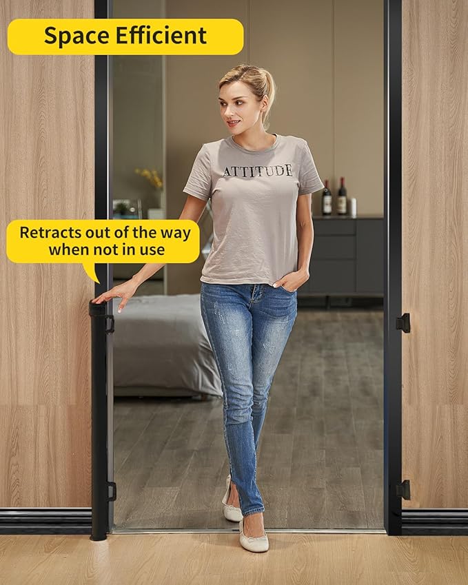 - Versatile Safety Solution – Perfect for keeping your infants, toddlers, and pets safe, this retractable gate is ideal for use around stairs, doorways, and hallways, offering peace of mind throughout your home.