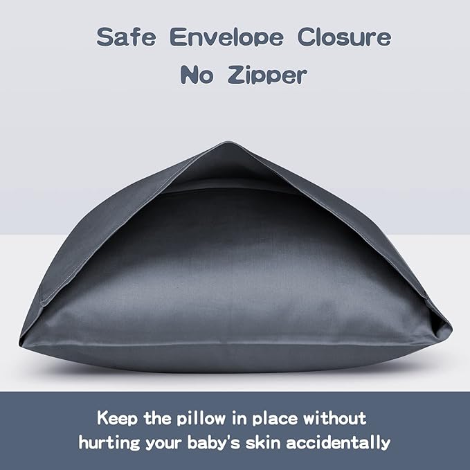 Soft Organic Cotton Toddler Pillowcases 14 X 20 Inches, Fit 13 X 18, 14 X 19 Pillows, Smooth Pearl Cotton Baby Pillowcases with Envelope Closure, Pink and Dark Grey, Set of 2