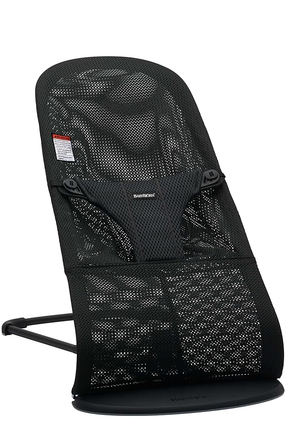 BabyBjörn Bouncer Bliss, Black Frame, Mesh, Black 2-in-1 Adjustable Baby Bouncer Seat and Toddler Chair, Newborn to Toddler (8-29 lbs), 4 Positions, Lightweight & Portable