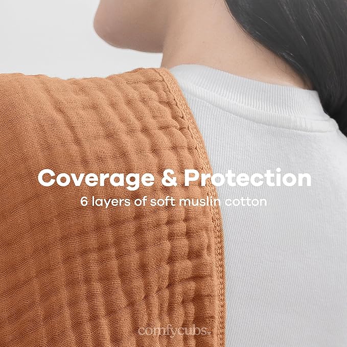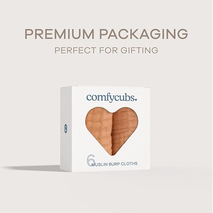 Comfy Cubs Muslin Burp Cloths 20" x 10", Pack of 6 - Large, 6-Layer, Ultra Absorbent 100% Cotton for Baby Drool and Messes - Soft, Safe & Gentle Baby Burp Cloths Set for Boys & Girls - Caramel