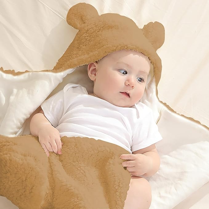 Baby Swaddle Blanket Boys Girls Cute Bear Plush Essential Receiving Blanket Ultra-Soft Newborn Registry Sleeping Wraps for Infant 0-6 Months - Brown