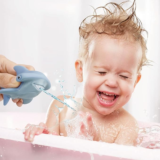 - Fishing Game Toys: 1 shark fishing net and 6 kinds of marine animals, including sea lion, starfish, turtle, whale and hammerhead shark. They can not only float on the water, but also spray water. This toy can be used not only for bathtubs and swimming pools, but also for floors, beaches, table games and decorations. Great interactive toys for children.