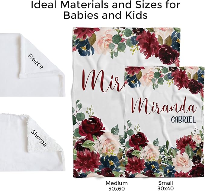 - Three sizes to choose from: 30''x40'' , 40''x50'' and 50''x60''. Perfect for not only babies but also small kids and even parents to join in. The personalized blanket also functions as a swaddle, a car seat blanket, or even a stroller cover