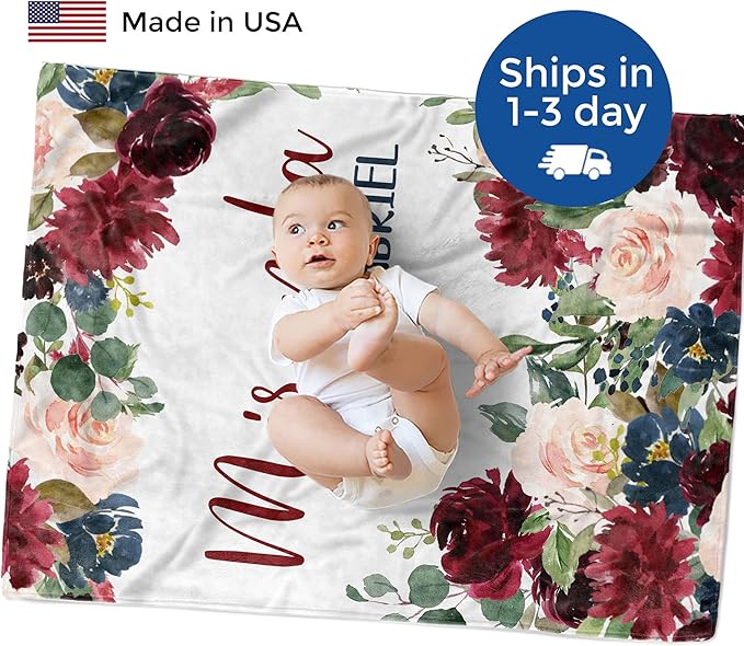 MDPrints Custom Baby Blankets for Boys and Girls, Personalized Baby Gifts, Customized Newborn Blanket with Name, Minky Plush Fleece (Floral 242)