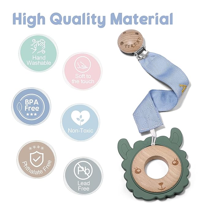 - Soft and Safety: The soother ribbon pacifier leash are made of soft webbing and the high quality material is washable; The clip head has three holes to avoid choking, making it safer for babies; Wooden stainless steel clip is lighter than silicone