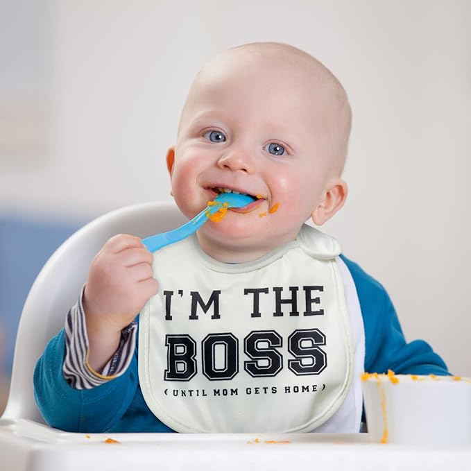 - Value set: Our adjustable baby bibs come in 7 different patterns such as red bow tie, gray bow tie, I'M THE BOSS, Daddy's Little Driver, puppy, CAN U HANDLE THIS CUTENESS, and car. Adjustable waterproof bibs prevent the baby's clothes from getting stained by soup, food, or sauce. With the unisex pattern design and EVA waterproof layer, you don't need to constantly worry about choosing a boy or girl style bib. Save your time, money, and energy.