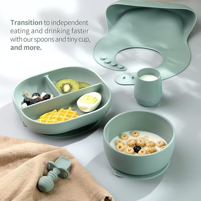 - Perfect for Baby Led Weaning and Self Feeding - Coming with 2 Chewable Spoons and 1 Tiny Cup, our set is ready to help your baby get used to utensils and open cups like a breeze.