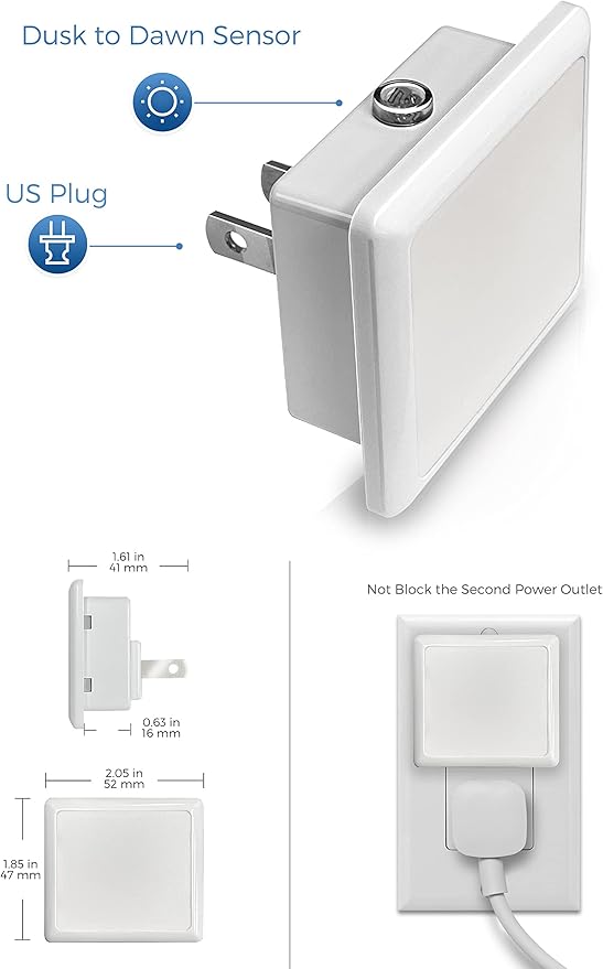 - Energy Efficient: Work with dusk-to-dawn sensor, brightness changes according to ambient light. The darker the surroundings are, the brighter the nightlight will be.