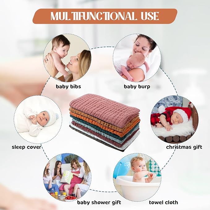 - Babies Accessories: the design of folds makes the large burp cloths softer, suitable for using as baby's washcloth, diaper, drool cloth, burp cloth, which can bring care to baby's skin