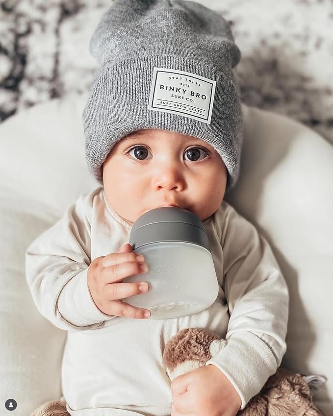 Nanobebe Flexy Silicone Baby Bottle, Anti-Colic, Natural Feel, Non-Collapsing Nipple, Non-Tip Stable Base, Easy to Clean 2-Pack, Gray, 5 oz