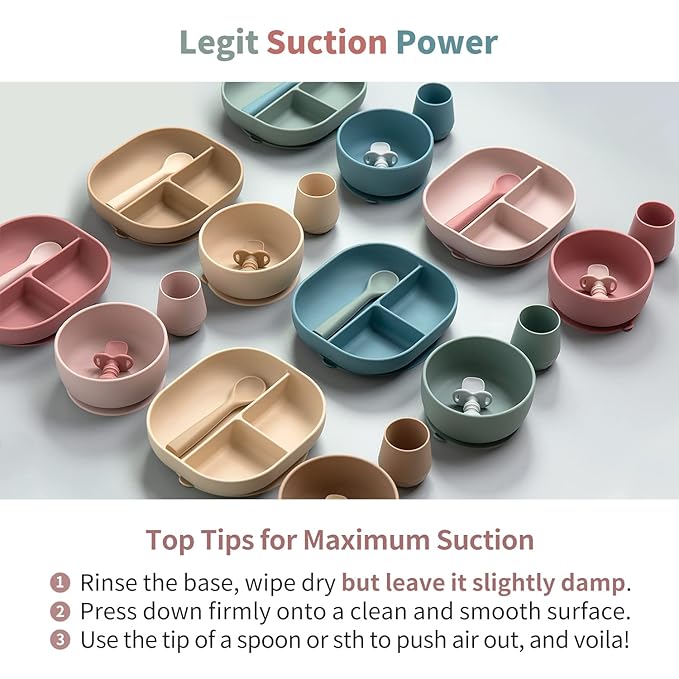 - Strong Suction Power - Our Plate and Bowl stick firmly to smooth surfaces, thanks to a larger Suction Base that creates the ultimate hold. Plus, our divided plate features an impressive height of 1.9″ which is approx 35% more than average!