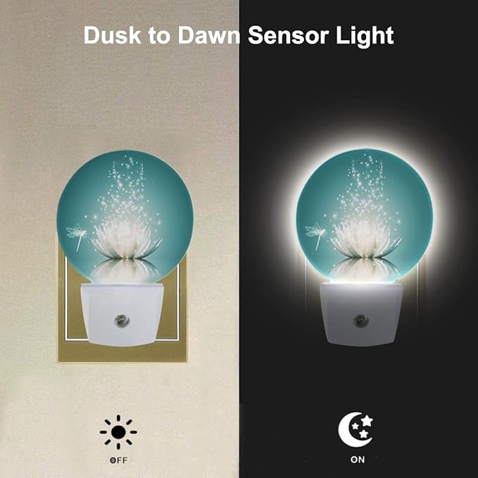 EKOBLA Lotus Night Light, Water Lily in Pond Dragonfly Floral Plug-in Night Lights with Dusk-to-Dawn Sensor for Bedroom Bathroom Living Room 0.5W Sleep Friendly for Women Girls Boys Gift